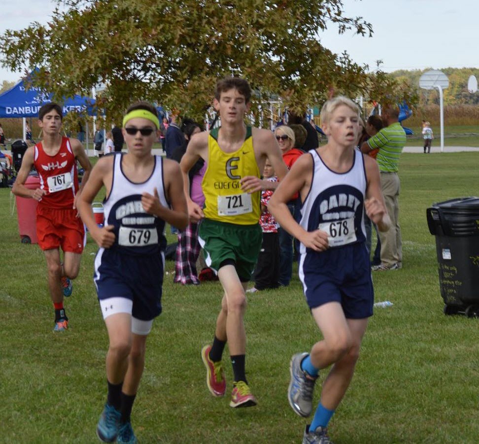 Jared pushes hard to the finish lineGrace holds off one last surge from a competing runner, beating her at the lineJared and John working through the fieldCoach Hesson and Grace give the boys some last minute info before their raceThe high school boys get ready for their start in Fostoria